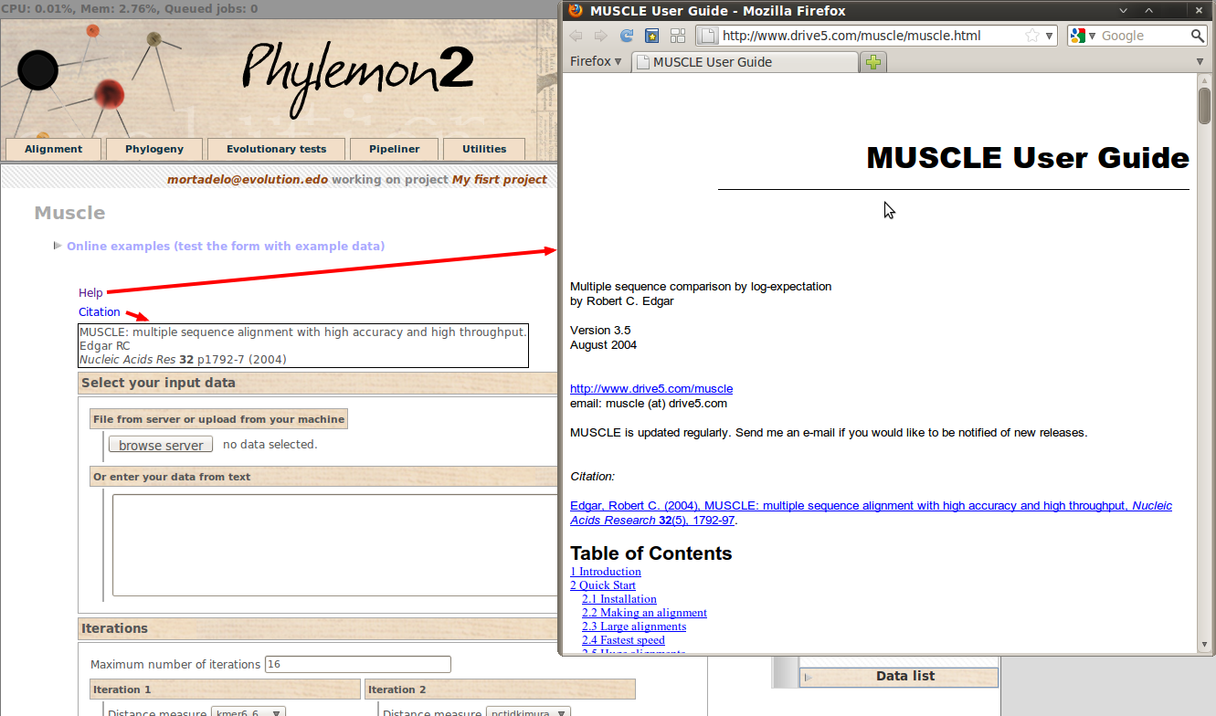 As with any of the tool/utility proposed by Phylemon, we can access to the documentation page of this tools through the Help link. Also it is possible to see the reference of the article corresponding to the current tool (if published).