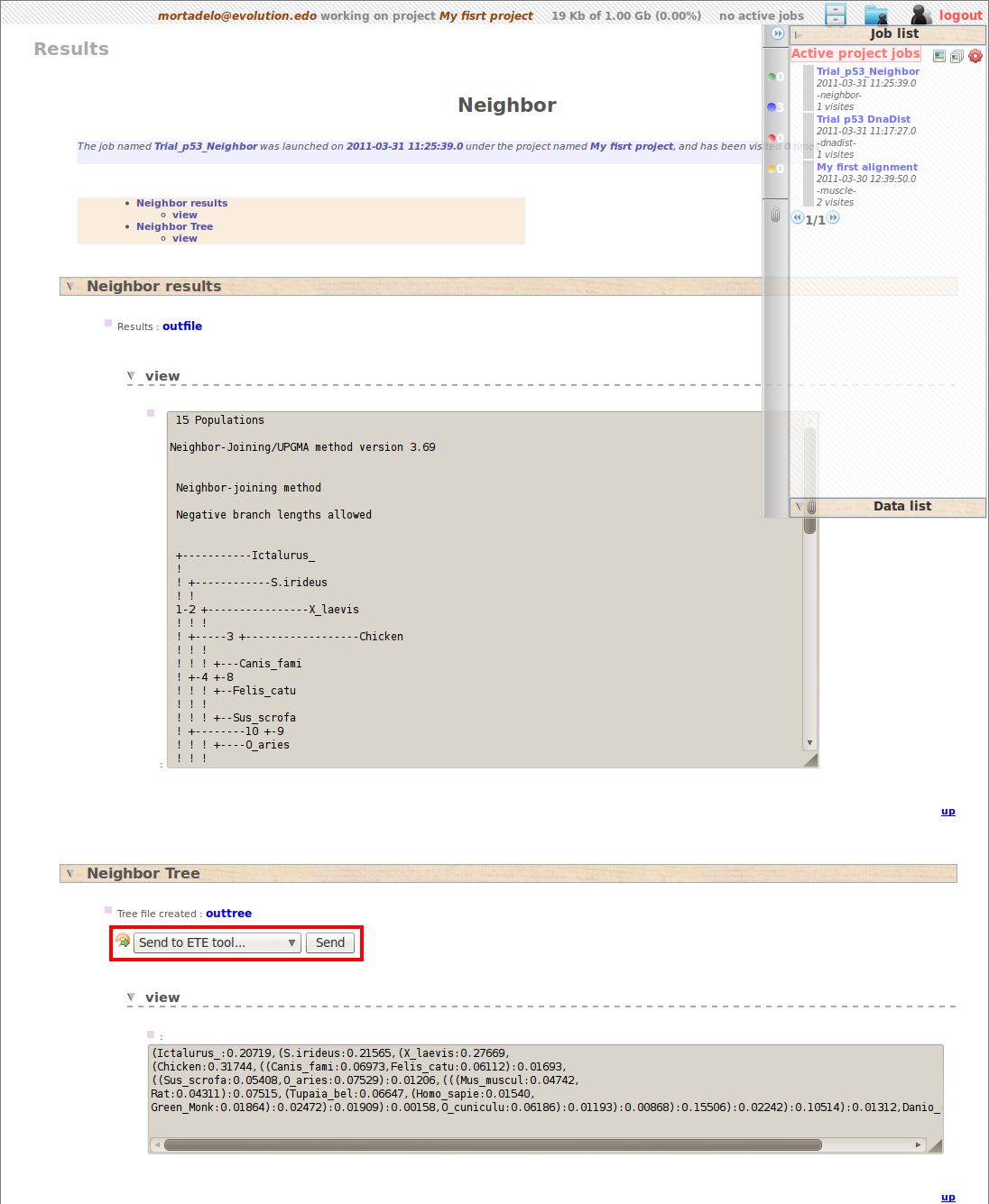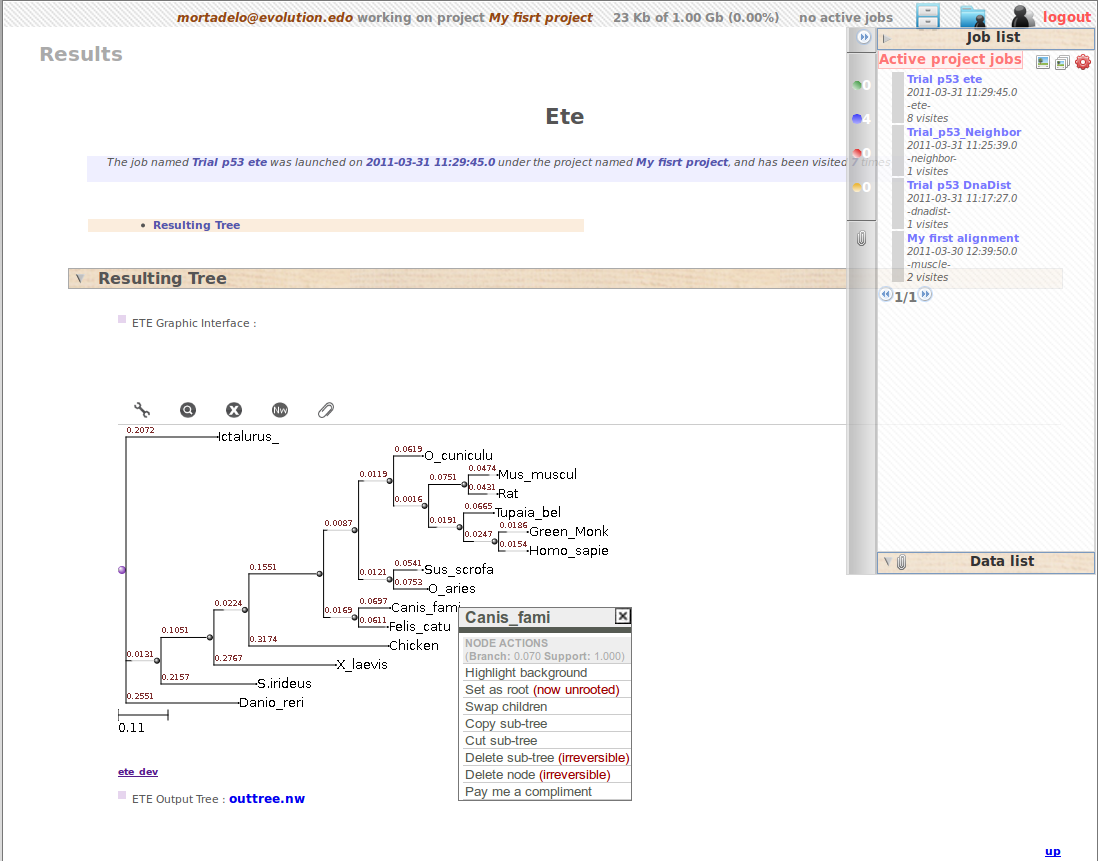 You have now obtained your trees from your p53 sequences. You can now have a look to you projects and data.