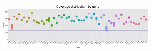 • Clustering and principal components methods were performed to explore the coverage data for all samples. Boxplots, scatterplots and statistics were used to describe coverage by gene and sample. Bar graphs described mean coverage for each region and gene.