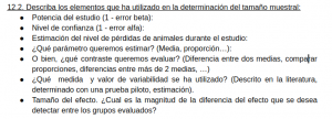dos apartados (11 y 12) que hacen referencia al diseño del experimento y el cálculo de la muestra: