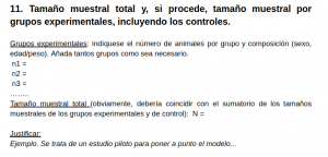 En el apartado 11 se indica el número de individuos por grupo experimental y el total del experimento.